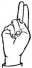 На ћирилици написано ДАНИЈЕЛ ШВРАКА састоји се из 13 слова [?]. Исписано ћириличном једноручном азбуком за глувонеме: